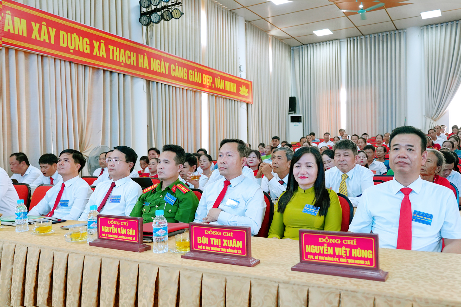 Về dự và tặng hoa chúc mừng Đại hội có đồng chí Nguyễn Tiến Anh - Phó chủ tịch Hội Nông dân tỉnh, Chánh văn phòng cơ quan MTTQ; Nguyễn Tố Nữ, chuyên viên Ban công tác nông dân tỉnh Hà Tĩnh; đồng chí Nguyễn Việt Hùng, Uỷ viên Ban chấp hành Đảng bộ tỉnh - Bí thư Đảng ủy - Chủ tịch HĐND xã Thạch Hà; đồng chí Bùi Thị Xuân - Phó Bí thư Thường trực Đảng uỷ; đồng chí Nguyễn Văn Sáu-Phó Bí thư Đảng ủy, Chủ tịch UBND xã; đồng chí Nguyễn Thị Lan Mến -UV BTV, Chủ tịch UB MTTQ xã cùng các đồng chí Ủy viên Ban Thường vụ Đảng ủy, Ủy viên Ban Chấp hành Đảng bộ; Trưởng, Phó các cơ quan, phòng, ngành, đoàn thể, đơn vị cùng các đồng chí Nguyên là lãnh đạo Hội Nông dân qua các thời kỳ; Bí thư, thôn trưởng 31 thôn và 112 đại biểu tiêu biểu đại diện cho hơn 2500 cán bộ, hội viên Nông dân trên địa bàn xã.