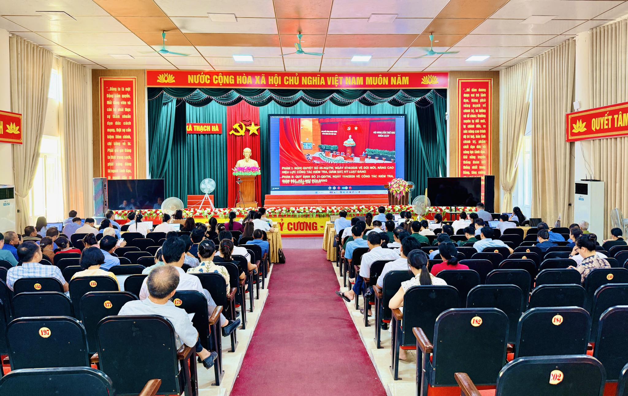 Hội nghị trực tiếp kết hợp trực tuyến toàn quốc (điểm cầu chính tại phòng họp Diên Hồng, Tòa nhà Quốc hội); điểm cầu các tỉnh ủy, thành ủy, đảng ủy trực thuộc Trung ương; điểm cầu các ban, bộ, ngành, đơn vị sự nghiệp trực thuộc Trung ương và điểm cầu cấp cơ sở ở những nơi có đủ điều kiện.