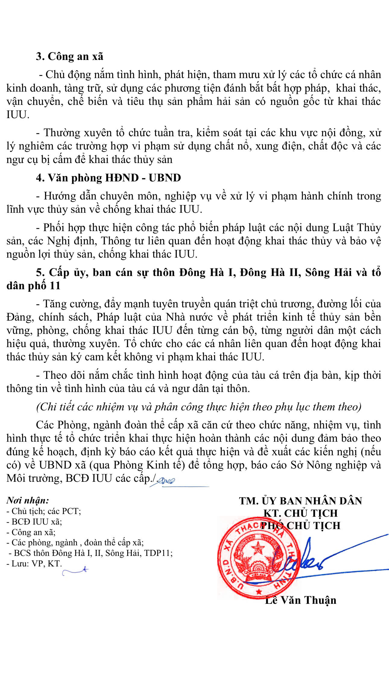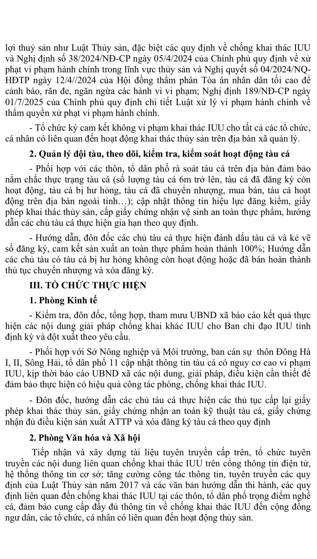 Kế hoạch thực hiện các nhiệm vụ, giải pháp chống khai thác hải sản bất hợp pháp, không báo cáo và không theo quy định, gỡ cảnh báo “Thẻ vàng” của Ủy ban châu Âu trên địa bàn xãThạch Hà năm 2025