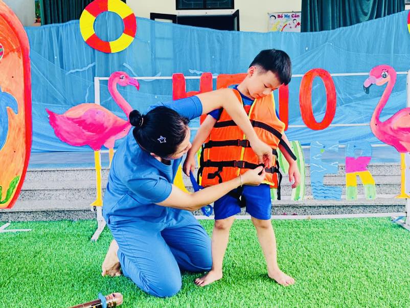 Thông qua các hoạt động thực hành như mặc áo phao đúng cách, nhận biết nguy cơ mất an toàn khi tiếp xúc với nước, các em được trang bị kỹ năng cần thiết để bảo vệ bản thân trong mùa hè.