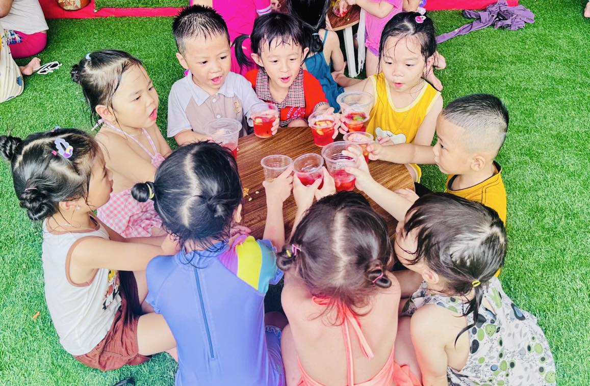 Kết thúc chương trình, nhà trường tổ chức tiệc nhẹ với hoa quả tươi và nước ép, giúp các bé bổ sung năng lượng sau những giờ vui chơi sôi nổi. Hoạt động không chỉ mang lại niềm vui mà còn góp phần phát triển thể chất, rèn luyện kỹ năng sống và tăng cường sự tự tin cho trẻ.