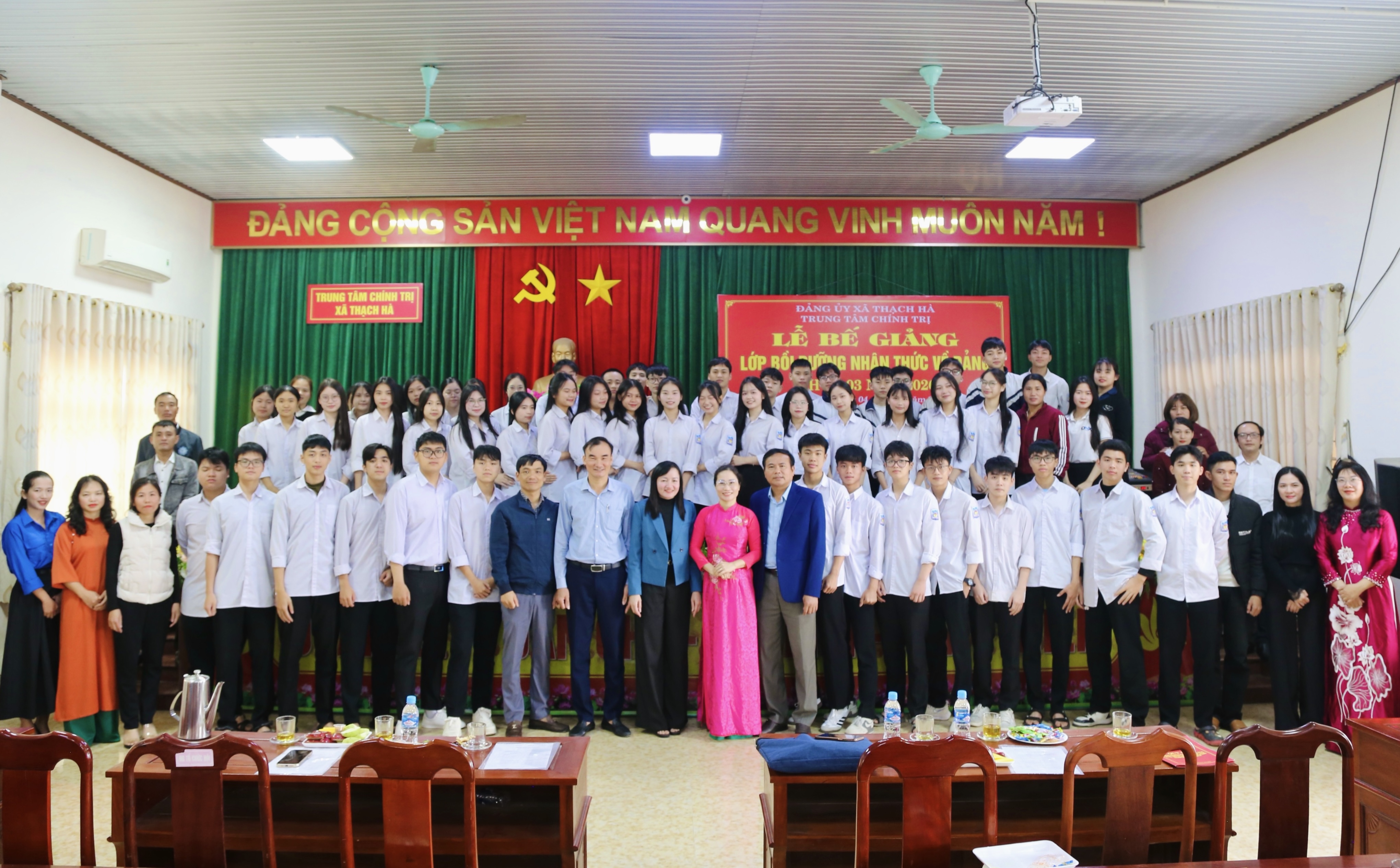 Sáng nay (04/02), Trung tâm Chính trị xã Thạch Hà phối hợp với Đảng uỷ các xã: Thạch Hà, Việt Xuyên, Thạch Xuân, Toàn Lưu, Đông Kinh và Đảng uỷ Trường THPT Lý Tự Trọng tổ chức Lễ Bế giảng lớp bồi dưỡng nhận thức về Đảng khoá 03 năm 2026.