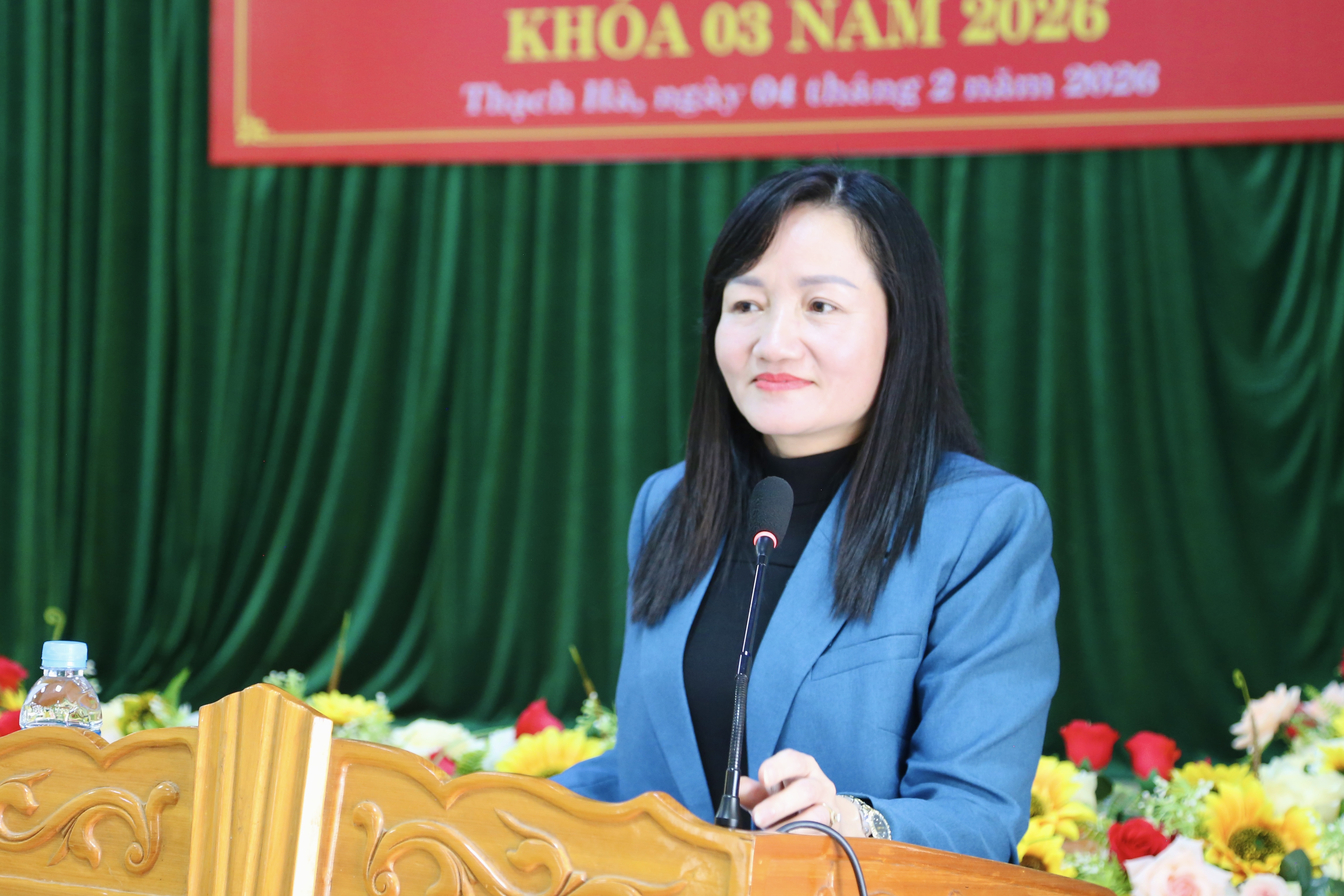 Phó Giám đốc trung tâm chính trị xã Thạch Hà Nguyễn Thị Cẩm Huyền báo cáo tổng kết
