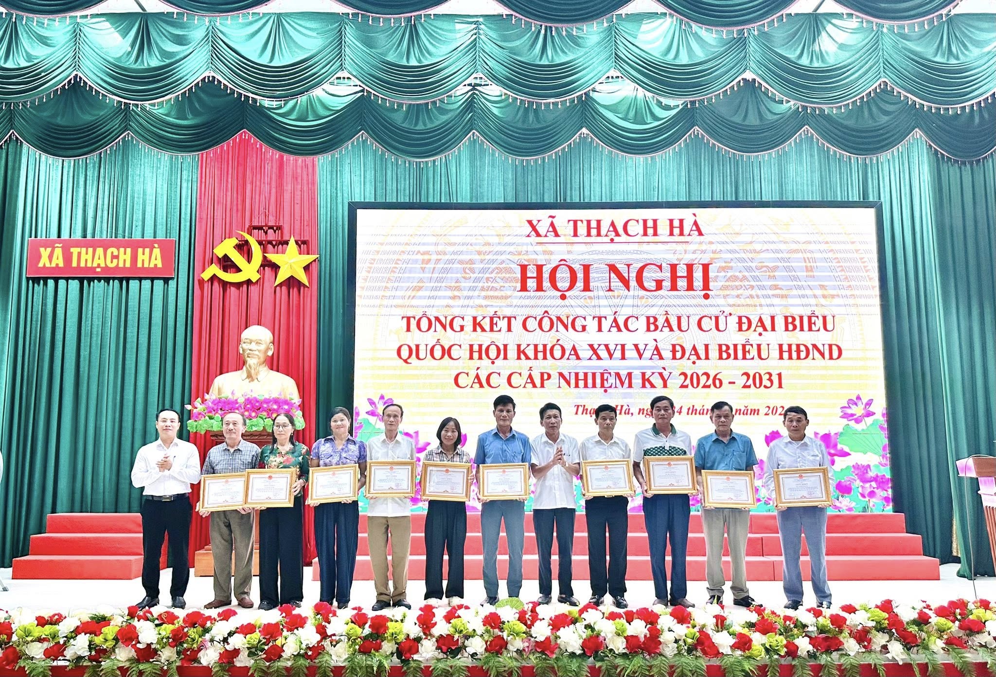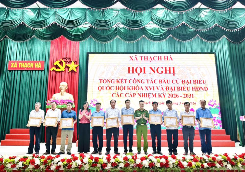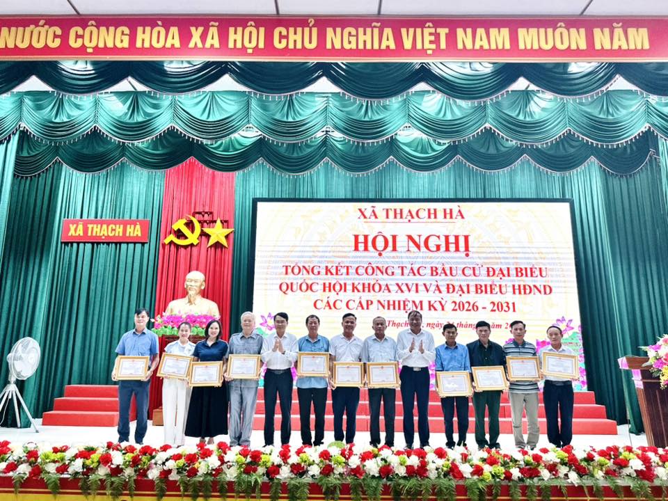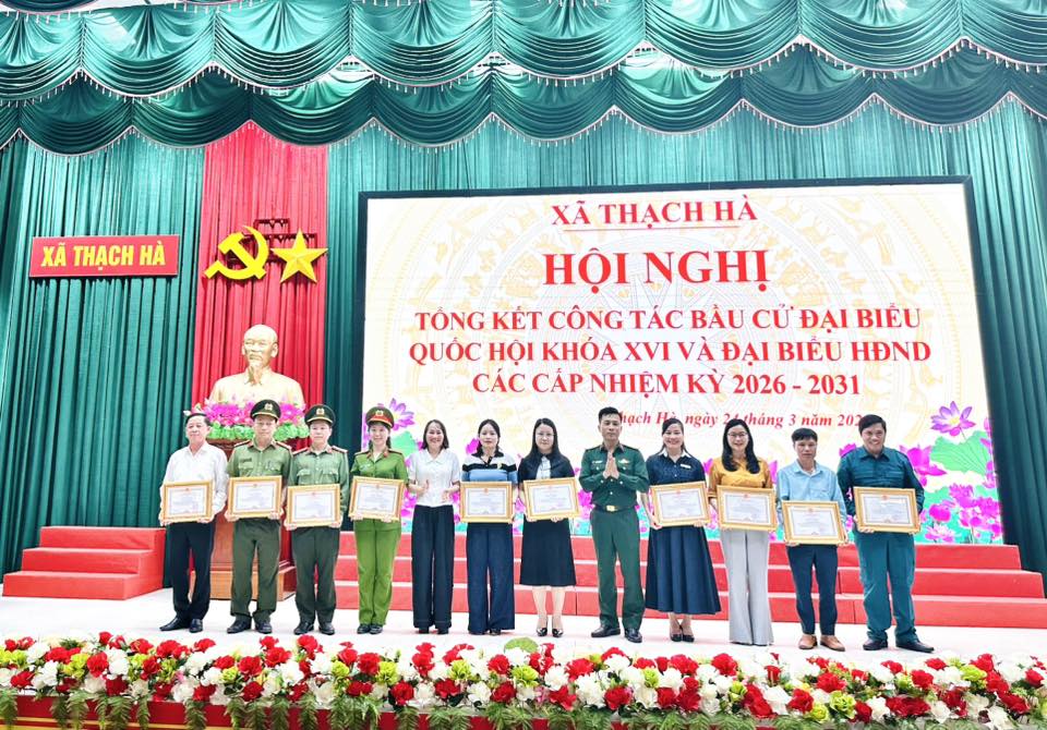 Nhân dịp này, UBND xã Thạch Hà đã biểu dương, khen thưởng các tập thể và cá nhân có thành tích xuất sắc trong công tác tổ chức bầu cử đại biểu Quốc hội khóa XVI và đại biểu HĐND các cấp nhiệm kỳ 2026 – 2031.